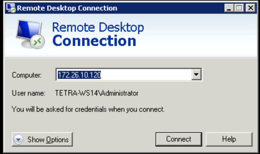 - Onder 'Computer' typ in of selecteer het IP adres van de build server: 172.26.10.120